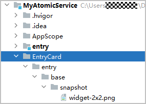 - 当需要替换元服务卡片的快照图片时,将“EntryCard > entry > base > snapshot > widget-2x2.png”替换成自定义的卡片快照效果图片: