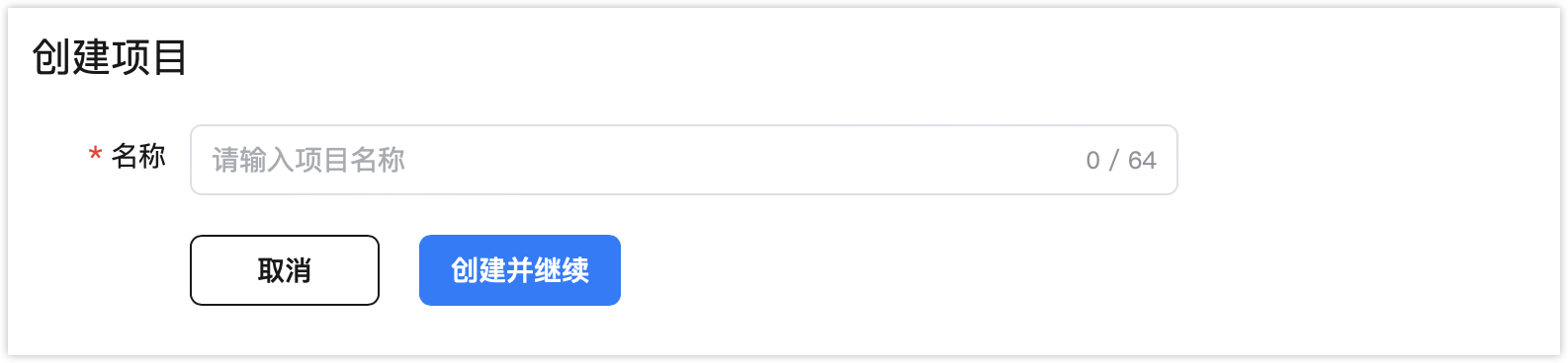 创建项目时需要填写项目名称,点击“创建并继续”。