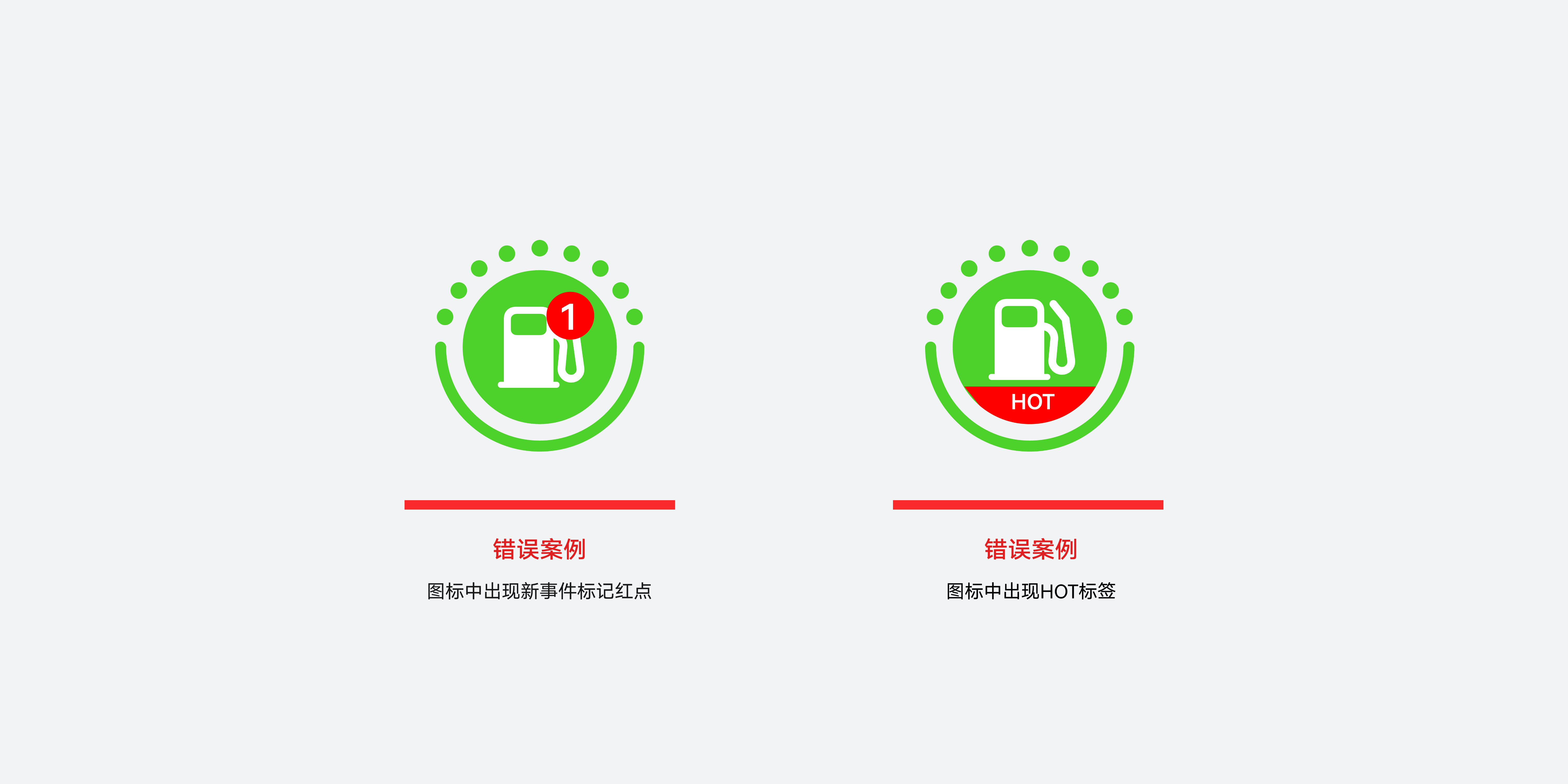 请勿使用可能误导用户的文字或图形元素,例如图标中包含新事件标记红点、HOT等元素,误导用户。