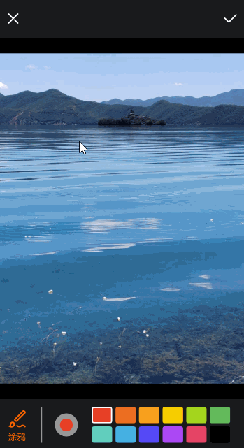 - 在图片上触摸并拖动手指,可以绘制路径,路径颜色为当前选中的画笔颜色。