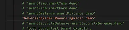 3. 修改【OpenHarmony/base/iot_hardware/bsp/include/hal_bsp_ssd1306_bmps.h】文件,将“#define ReversingRadar 0”改为“#define ReversingRadar 1”。如下图所示: