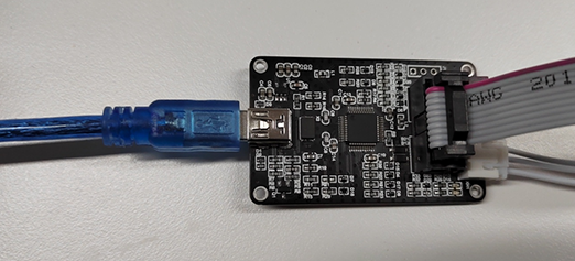 23. 将RJ11黑色扁平线作为ST-Link仿真器与UPS驱动板之间进行连接,如下图所示: