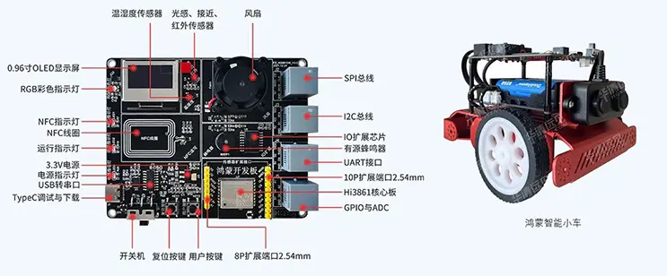 华清远见FS-Hi3861开发套件,支持HarmonyOS 3.0系统。开发板主控Hi3861芯片内置WiFi功能,开发板板载资源丰富,包括传感器、执行器、NFC、显示屏等,同时还配套丰富的拓展模块。开发板配套丰富的学习资料,包括全套开发教程、视频课程、7大项目实战案例,
