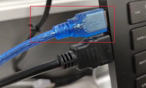 22. 将USB转mini数据的另一端连接电脑的USB端口,如下图所示: