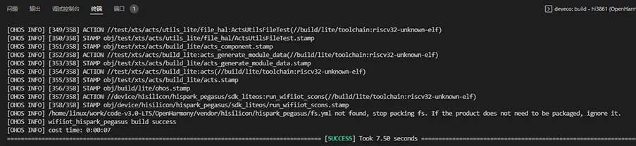 6. 编译完成之后,会在终端中提示“SUCCESS”字样,说明编译完成。