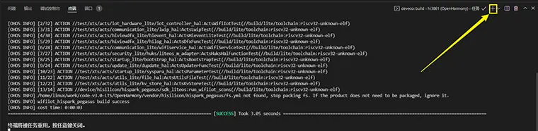 5. 在Vscode的左侧按钮中,打开DevEco Device Tool开发工具,在开发工具中首先点击“Clean”,再点击“build”进行编译源码。