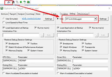 18. 需要配置烧写工具,点击工具栏中的,进行配置ST-Link Debug模式: