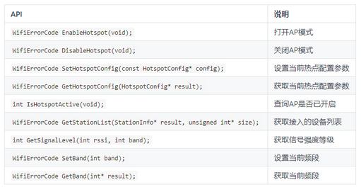 WifiErrorCode errCode = StartHotspot(&config);