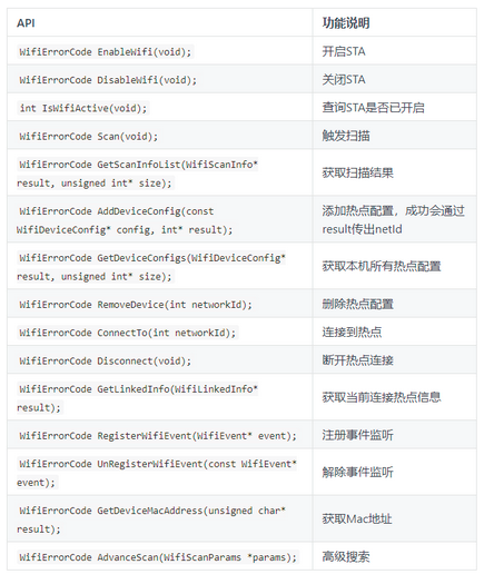 STA模式 鸿蒙WiFi STA模式的API接口有: