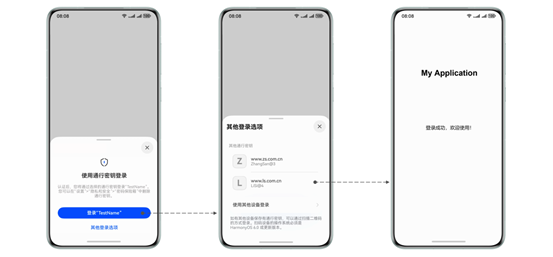 用户在其他设备上登录应用或网页时,需要验证用户的身份,可以使用通行密钥服务的跨设备扫码认证能力。