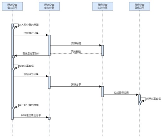 用户在分享图片、文件或热点时,需经历复杂的操作流程(如打开应用、选择文件、搜索设备、确认传输等),步骤繁琐且耗时;或者需要用户打断当前操作(如暂停视频播放、退出游戏界面),导致体验不连贯。(Share Kit)推出了""能力,支持用户通过碰一碰发起跨端分享,可实现传输图片、共享WI-FI等。只需轻轻触碰两台设备,即可完成内容的传递。