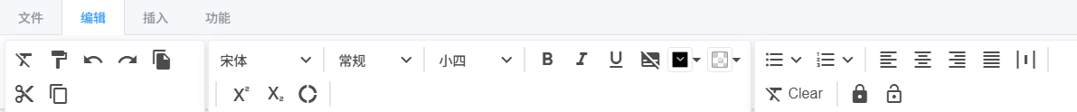 复制、剪切、粘贴文本、带格式粘贴、撤销、回退、字体、字形、字号、字体颜色、背影颜色、下划线、删除线、上下标等