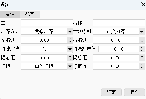 ID、名称、对齐方式、大纲级别、段落样式、标号样式定义、左缩进、右缩进、特殊缩进、特殊缩进值、段前距、段后距