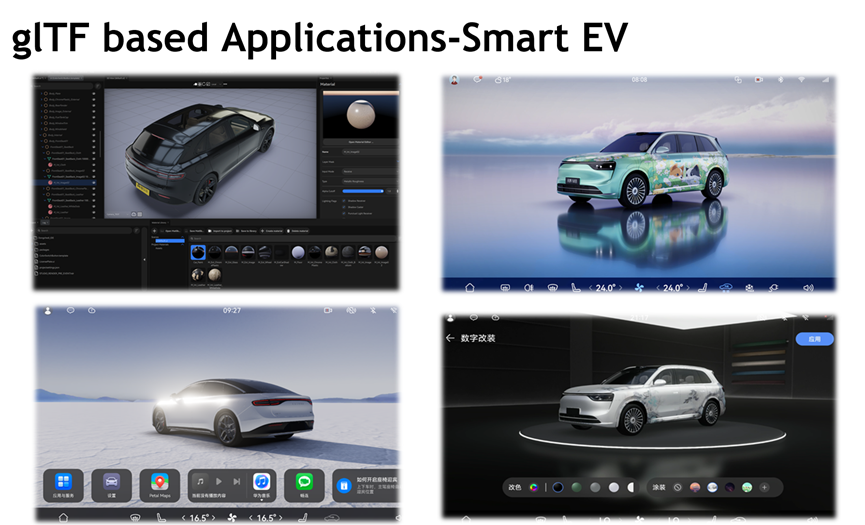 它基于Khronos的glTF 3D标准,可以用于3D的UI场景渲染,也可以用车机的场景: