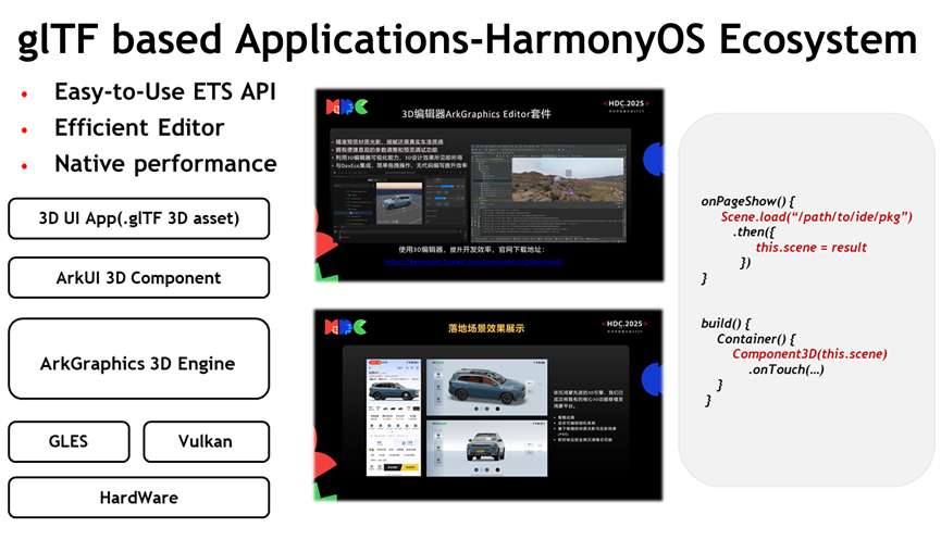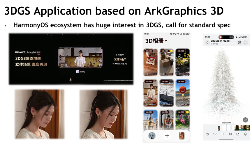 因为上述3DGS的持续火爆,3D领域急需要一个新的3D标准,以能够带有3DGS的新的表达,而行业上的AOUSD和glTF就是两个很重要的渲染。极致流畅、高端精致和畅玩游戏,这12个字几乎涵盖了图形的消费者级的用户体验,整个方舟图形引擎在带给用户精致UI的基础上,又带来了丝滑流畅的动画。Siggraph Asia 2025有太多值得回忆的地方,尤其是鸿蒙方舟图形引擎的全面亮相,让整个行业认识到了鸿蒙
