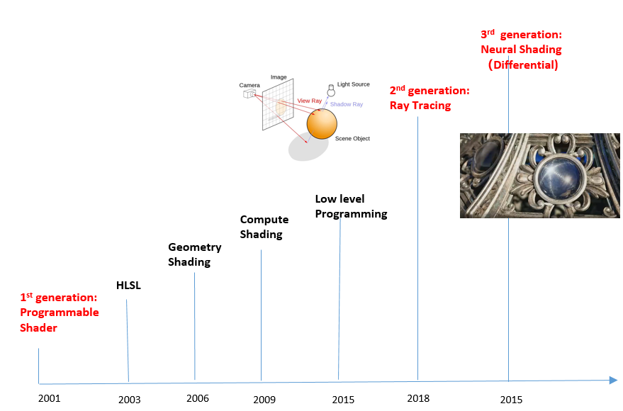 我们都知道图形经历了三代发展,从传统可编程shader、光线追踪,目前已经进入到了神经渲染阶段: