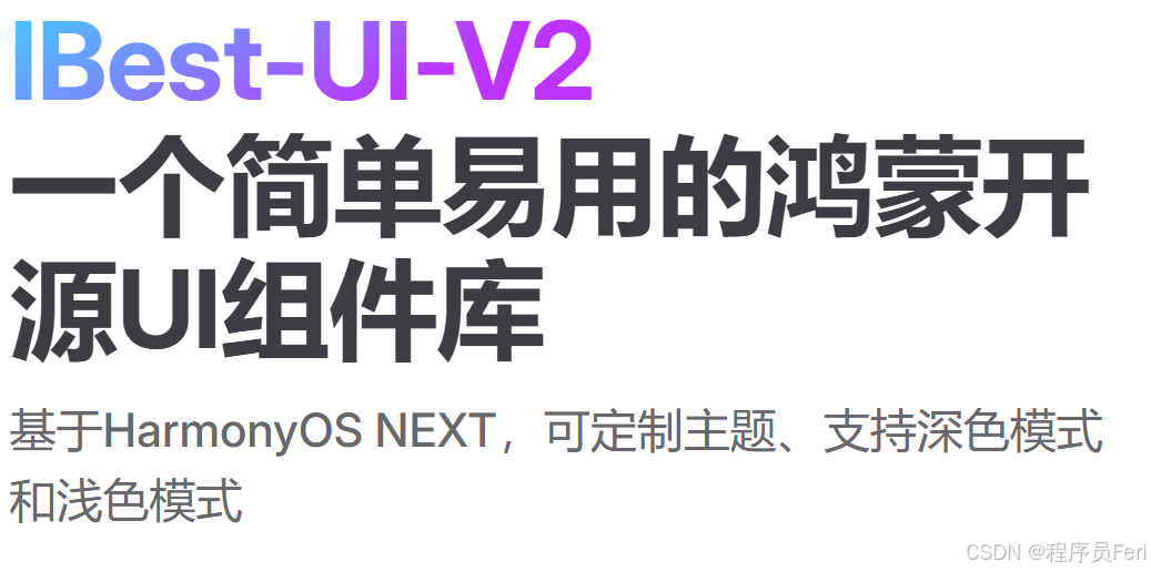 《IBest-UI:鸿蒙开发者的高效UI组件库》摘要 IBest-UI是由百得思维公司开源的一款鸿蒙OSNext专属UI组件库,包含60+即插即用组件,涵盖基础控件、表单、图表等开发场景。该库具有三大核心优势:全面覆盖开发需求(如车牌输入、省市区联动等特殊组件)、90%+单元测试保障稳定性、100+主题变量支持灵活换肤。提供V1/V2双版本适配不同项目需求,配套ucharts图表工具和ORM等扩展