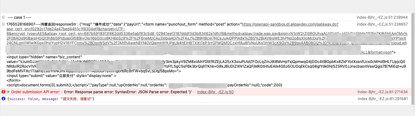 h5嵌入鸿蒙,h5跳到支付宝沙箱版本支付页面时,JSON.parse又报错了,此处有2种解决方式:
