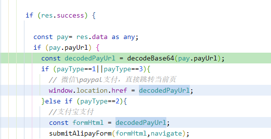 方法二:后台base64处理支付宝返回的payUrl字符串,前端再decode处理