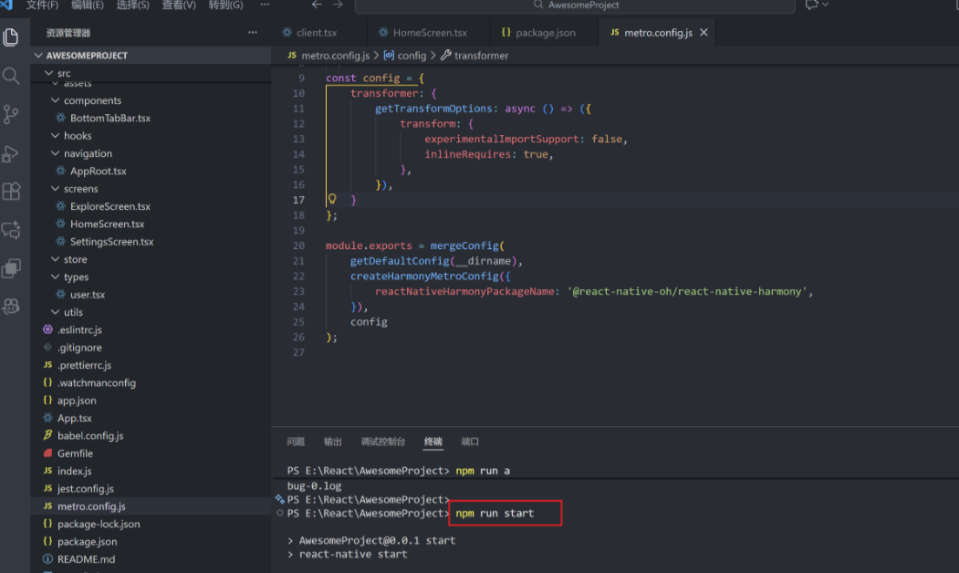 没有搭建react环境的可以看我之前写的文章,如果没完成,请先完成React的鸿蒙环境搭建。