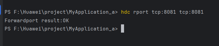 先运行自己的鸿蒙项目,当模拟器启动成功后,在终端执行:hdc rport tcp:8081 tcp:8081 的命令