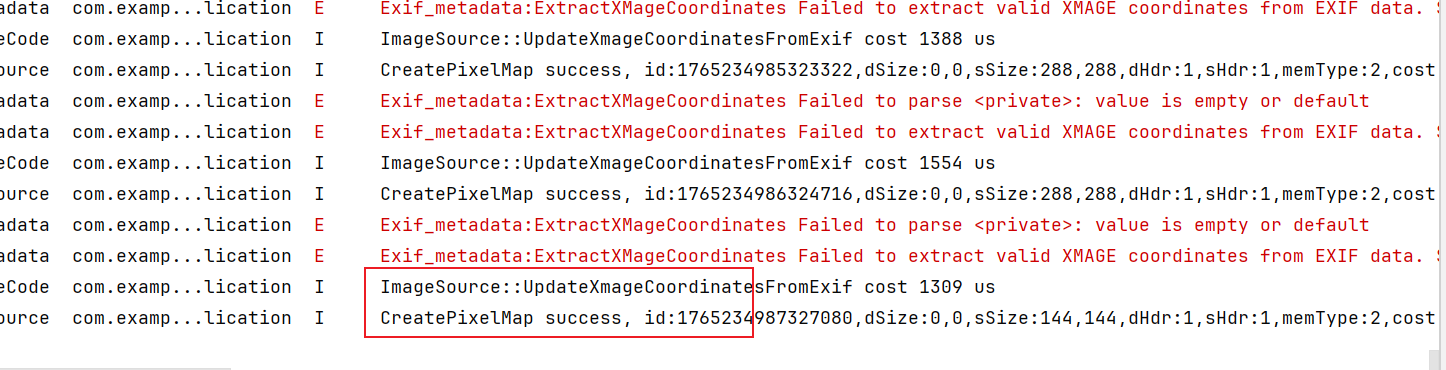 这里使用ImageAnimator组件时,有个小问题,如果一直循环播放,hilog会一直打印图片解析的日志,因为底层ImageAnimator组件还是会把图片资源解析为PixelMap对象,组件本身不会缓存该对象,会一直循环解析,影响一定的性能。另一方面不停的打印日志会冲刷掉正常业务日志,如果业务依赖系统hilog日志定位问题,会有一定影响,循环打印的日志如下,解决方案就是先自己提前将图片解析为PixelMap对象后,再传给组件,这就和使用Image组件没有啥区别