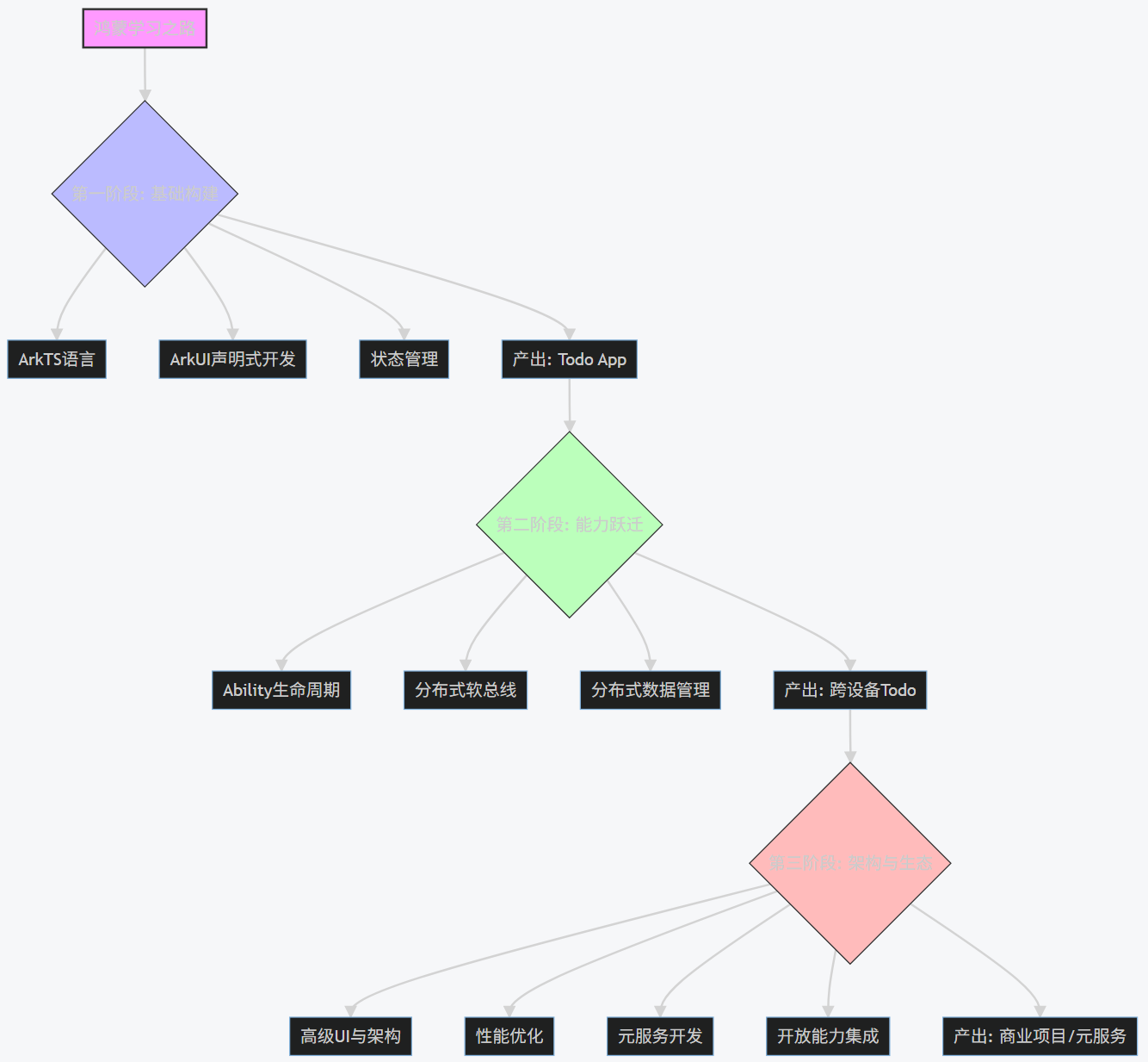 A[鸿蒙学习之路] --> B{第一阶段: 基础构建};