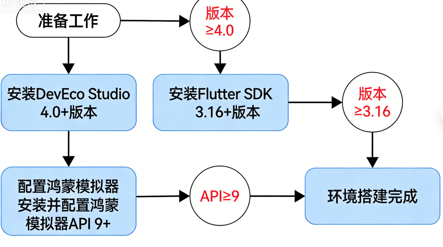 在开始编码前,需完成鸿蒙开发环境与 Flutter 跨平台环境的双向配置,确保两者能正常通信(核心是解决 Flutter 与鸿蒙原生的通道调用问题)。