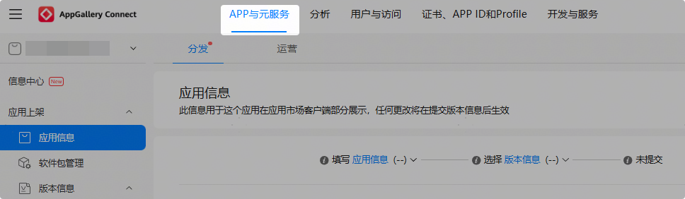点击“确认”,进入“应用信息”界面。您可点击顶部“APP 与元服务”页签,返回应用列表。