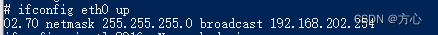 ifconfig eth0 192.168.1.7 netmask 255.255.255.0 broadcast 192.168.1.255 #设置ip地址、网关和子网掩码