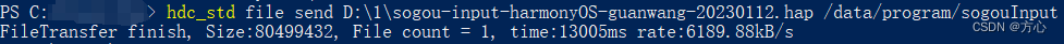 hdc_std file send [D:\本地路径] [/data/设备路径] #发送文件到设备