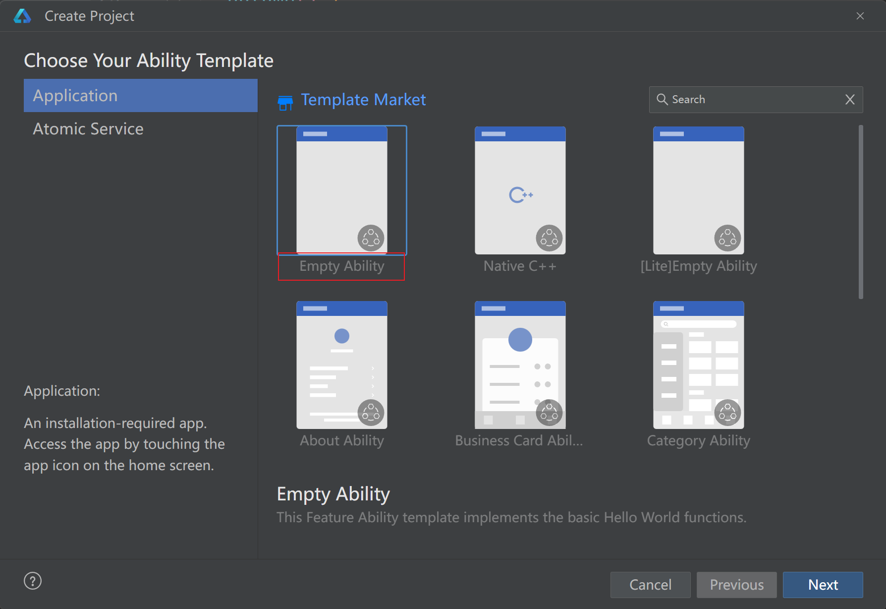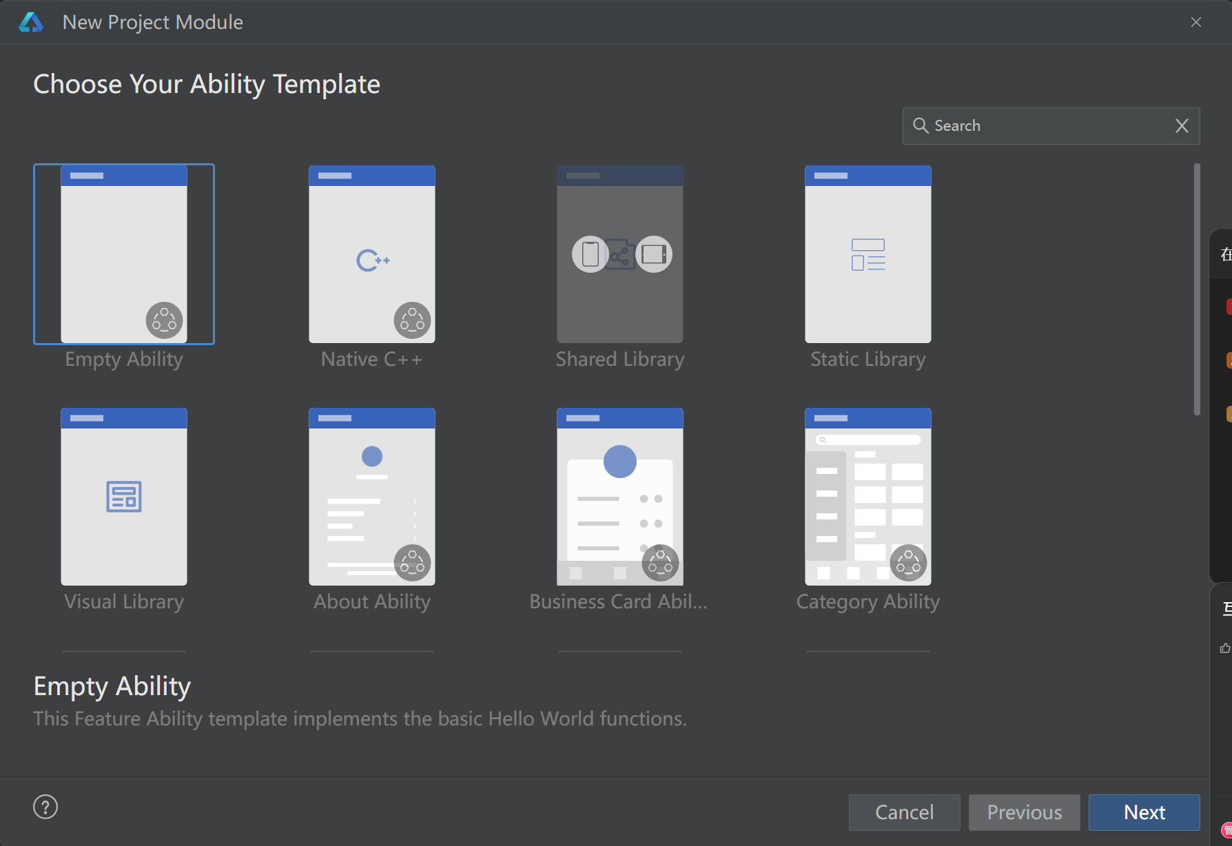 - 选择Ability相关模版进行创建