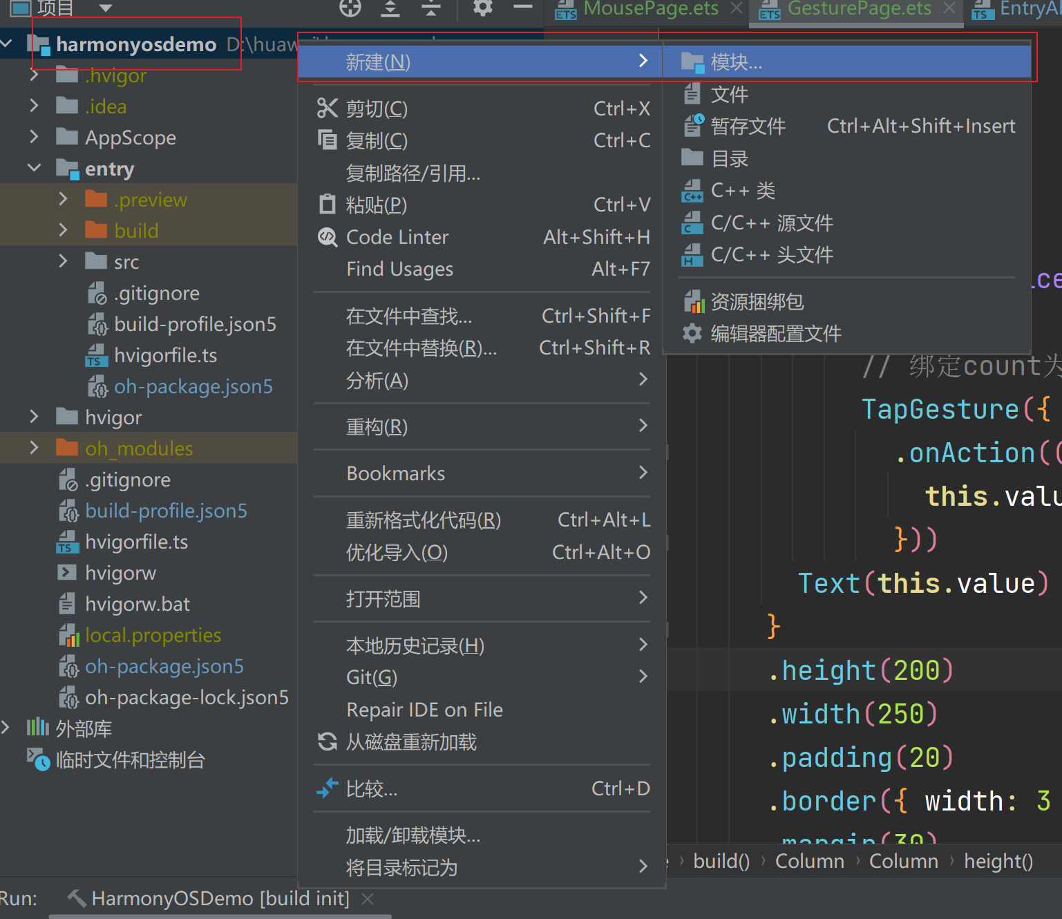 - 会新建成功出现一个application,Feature类型的HAP包