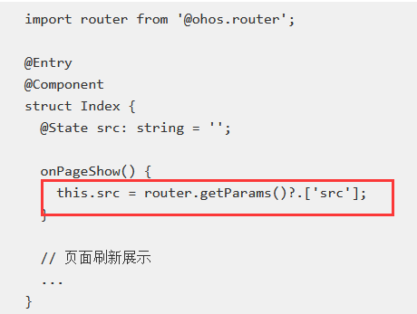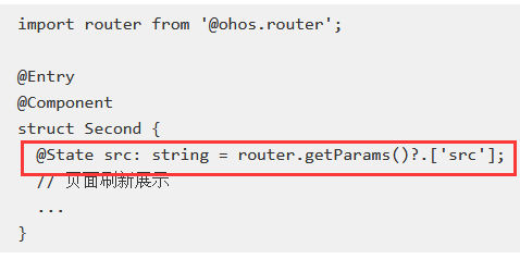 原页面通过router.getParams()方法获取Second页面传递过来的自定义参数。
