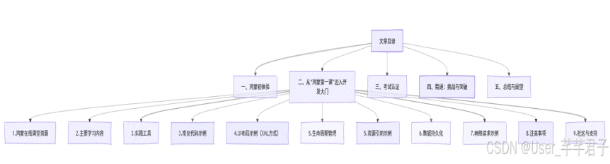 《鸿蒙第一课》作为鸿蒙开发的官方入门核心课程,以 “学、练、考” 融合模式为不同层次开发者搭建进阶阶梯,是衔接基础能力与 HarmonyOS 6 新特性的关键起点 。其课程体系精准覆盖学习全周期: