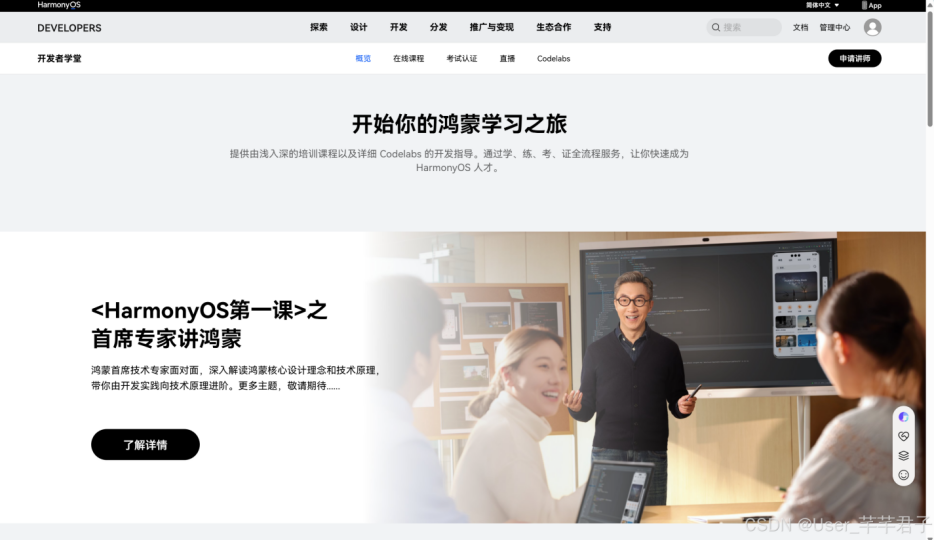 华为官方提供了鸿蒙(HarmonyOS)开发者学堂,包含系统化的课程和文档,适合从入门到进阶的学习需求。平台涵盖 HarmonyOS 应用开发、设备开发、分布式技术等核心内容,并提供实战案例和在线实验环境。