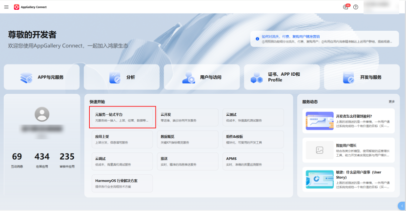 为方便您快速开启元服务之旅,平台在开发者常用路径均设有便捷入口: