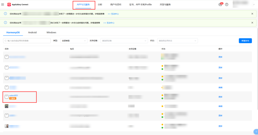在「APP与元服务」页面选择「元服务」标签,直达您的专属管理面板。