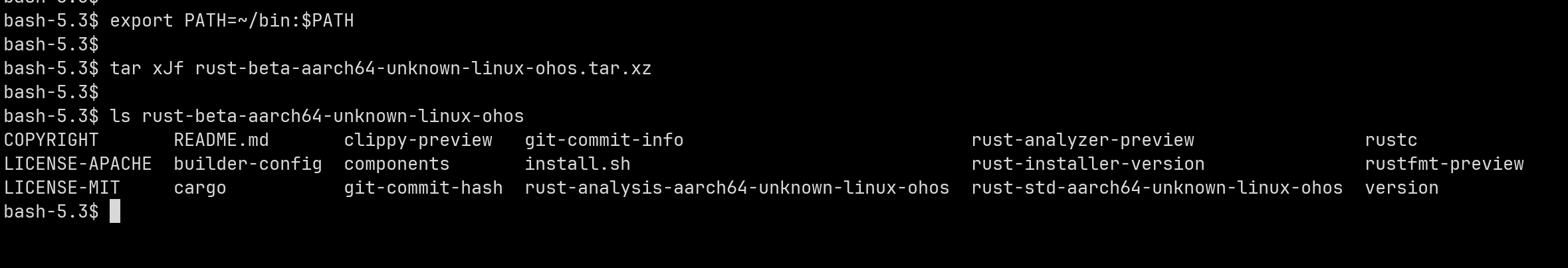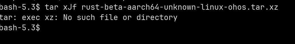 在成功获取到rust-beta-aarch64-unknown-linux-ohos.tar.xz文件后,却发现无法直接通过鸿蒙操作系统上的tar xJf命令来解压缩该文件,提示系统中缺失xz工具。为了解决问题并增强鸿蒙PC环境下对.tar.xz格式文件的支持能力,我着手进行了xz命令及相关组件向该平台的移植工作。本文旨在分享此次通过交叉编译方式移植xz命令过程中的具体步骤与经验总结,希望能够为其他开发者提供参考和帮助。