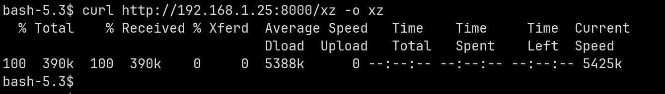 使用curl http://192.168.1.25:8000/xz -o xz命令即可将Linux电脑上的xz下载到鸿蒙PC上了。
