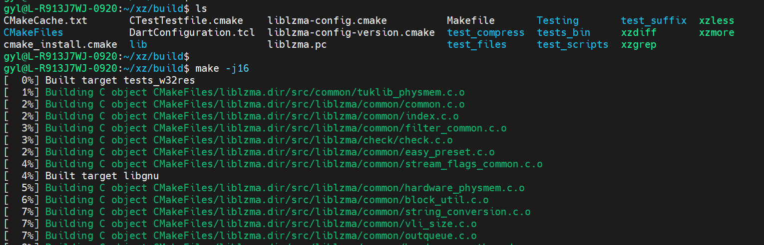 xz支持2种编译框架:automake+configure+make和cmake+make。这里,我们以cmake为例,进行编译。