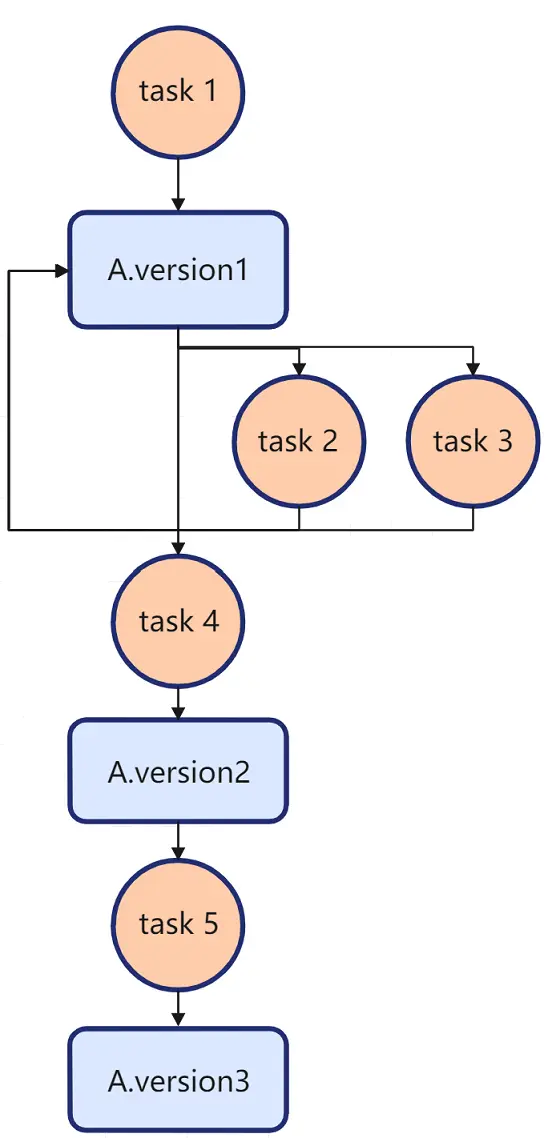 - task2/task3 与task4 构成Consumer-Producer 依赖,即:task4 需要等到task2/task3 读完A之后才能写A。