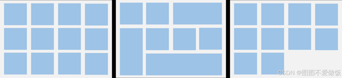 Grid组件支持自定义行列数和每行每列尺寸占比、设置子组件横跨几行或者几列,同时提供了垂直和水平布局能力