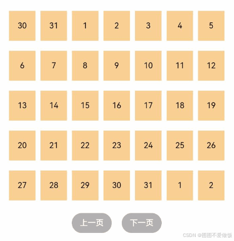 .rowsTemplate('1fr 1fr') // 只设置rowsTemplate属性,当内容超出Grid区域时,可水平滚动。