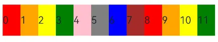 @State bgColors: Color[] = [Color.Red, Color.Orange, Color.Yellow, Color.Green, Color.Pink, Color.Grey, Color.Blue, Color.Brown,Color.Red, Color.Orange, Color.Yellow, Color.Green];