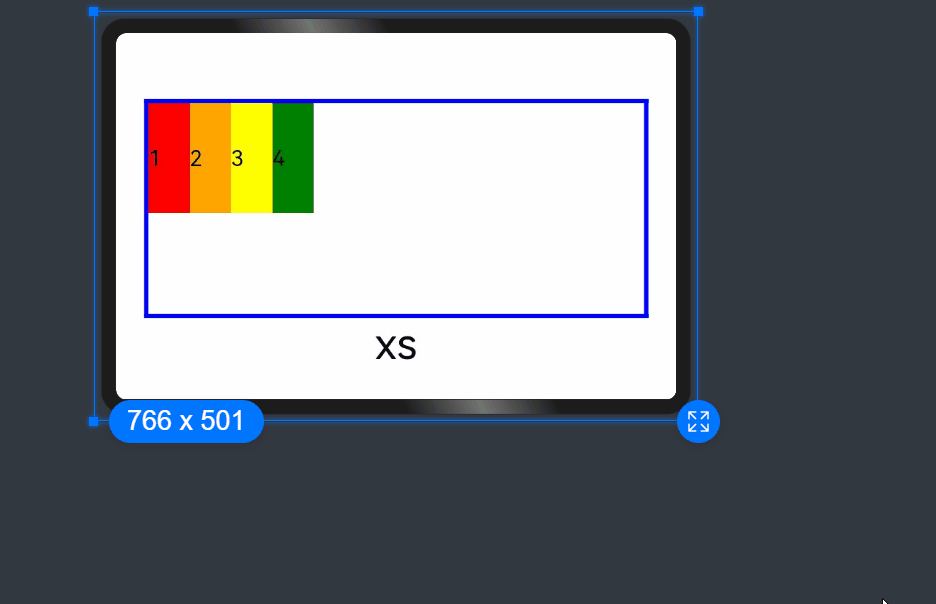 - 当类型为GridColColumnOption时,支持六种不同尺寸(xs, sm, md, lg, xl, xxl)设备中子组件排序次序设置。在xs设备中,子组件排列顺序为1234;sm为2341,md为3412,lg为2431。