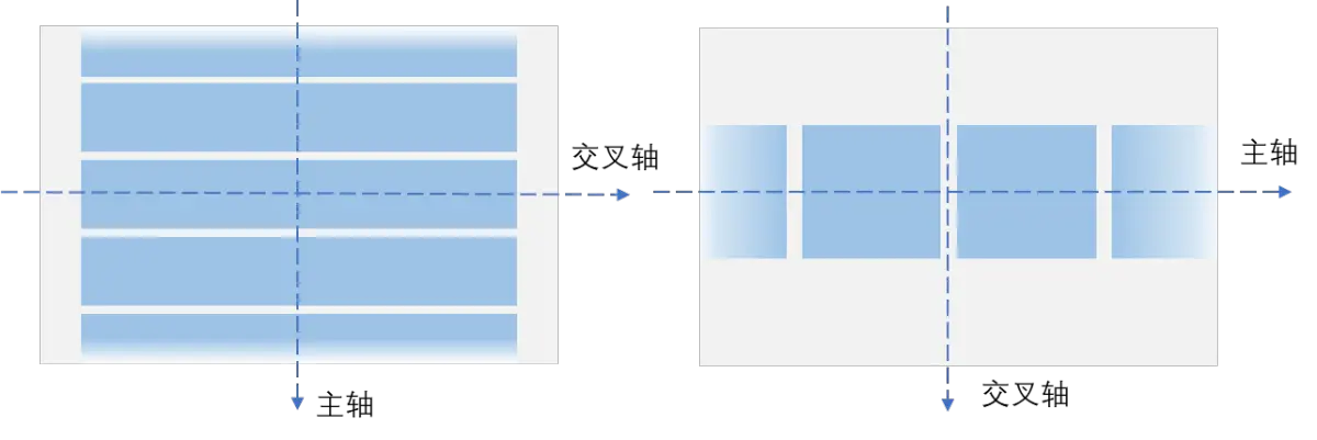 如下图所示,垂直列表的主轴是垂直方向,交叉轴是水平方向;水平列表的主轴是水平方向,交叉轴是垂直方向。