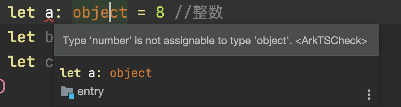 最后一点是,ArkTS不支持any和unknown类型,需要显式指定具体类型,否则会报异常,具体原因是,这是ArkTS的特性之一,那就是使用静态类型;如果程序采用静态类型,即所有类型在编译时都是已知的,那么开发者就能够容易理解代码中使用了哪些数据结构。同时,由于所有类型在程序实际运行前都是已知的,编译器可以提前验证代码的正确性,从而可以减少运行时的类型检查,有助于提升性能。