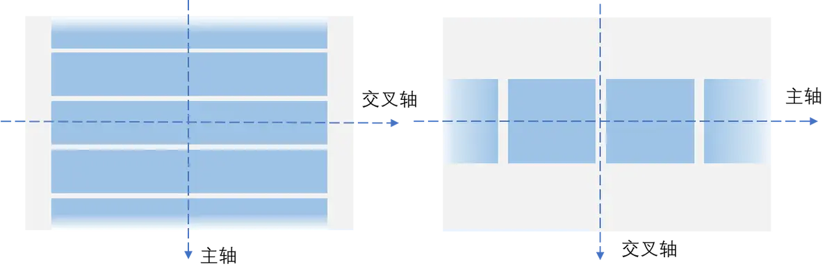 如下图所示,垂直列表的主轴是垂直方向,交叉轴是水平方向;水平列表的主轴是水平方向,交叉轴是垂直方向。