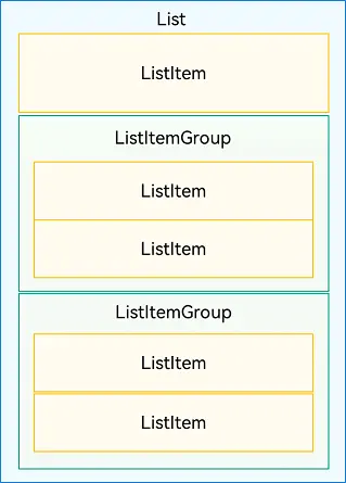 如下图所示,在垂直列表中,List按垂直方向自动排列ListItemGroup或ListItem。